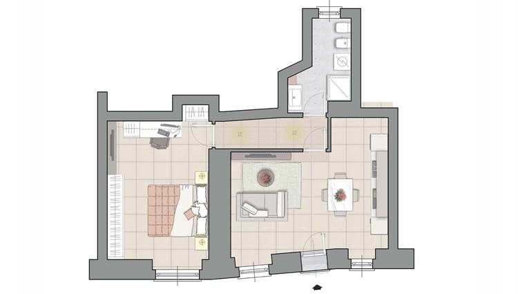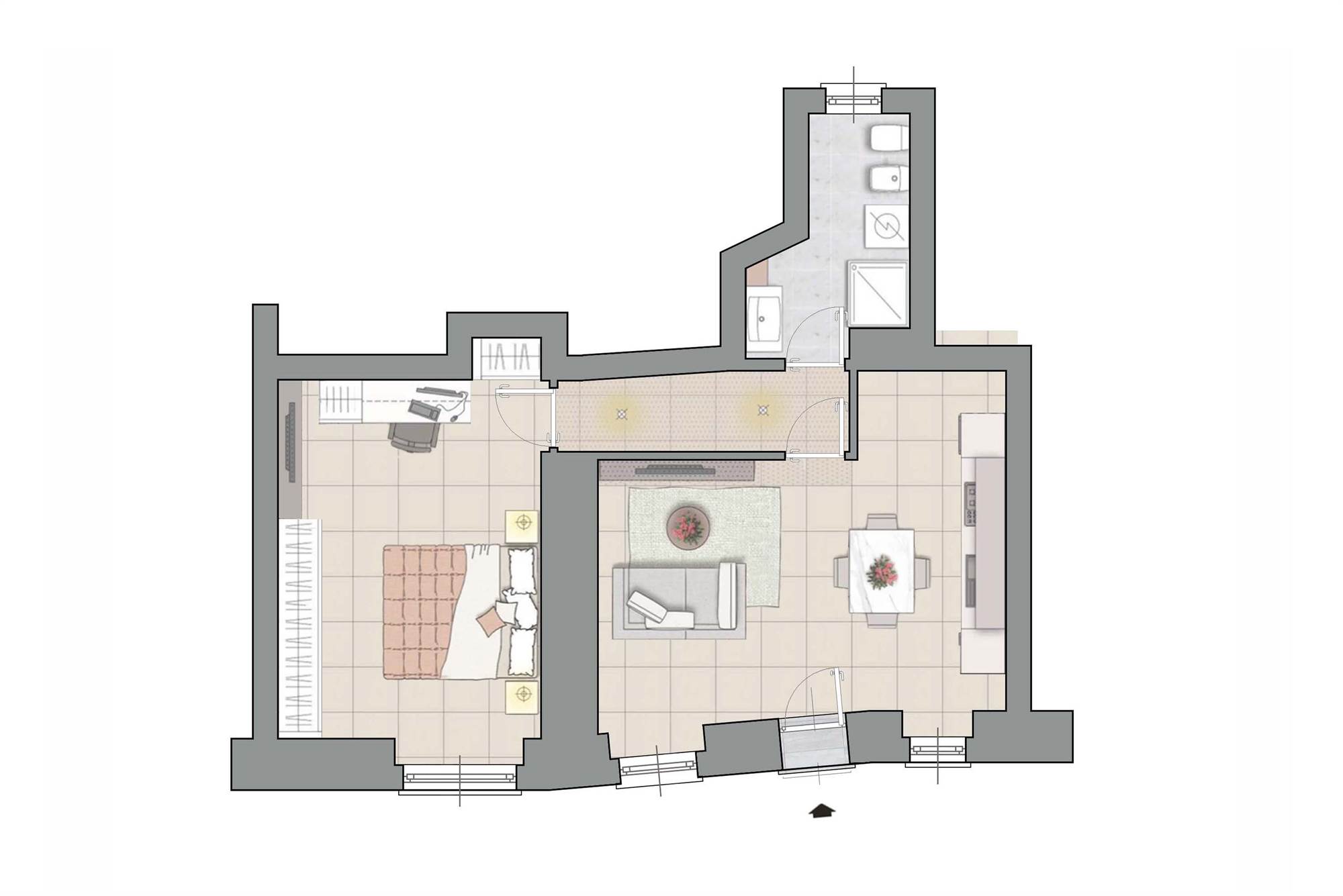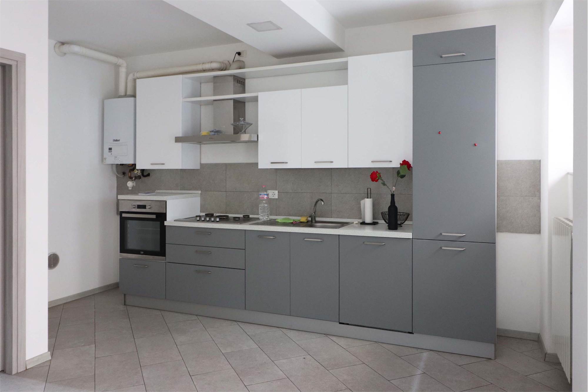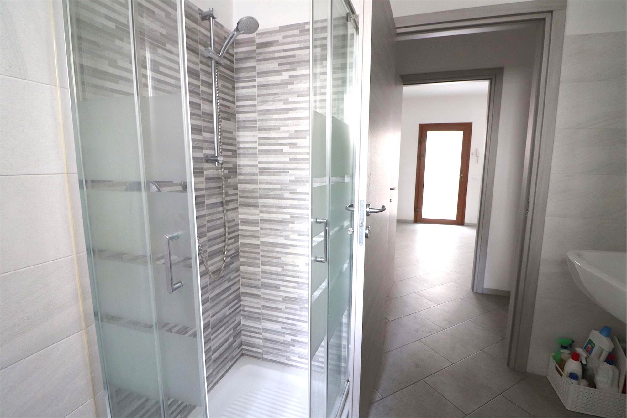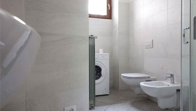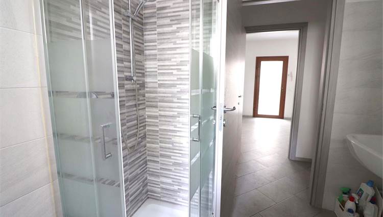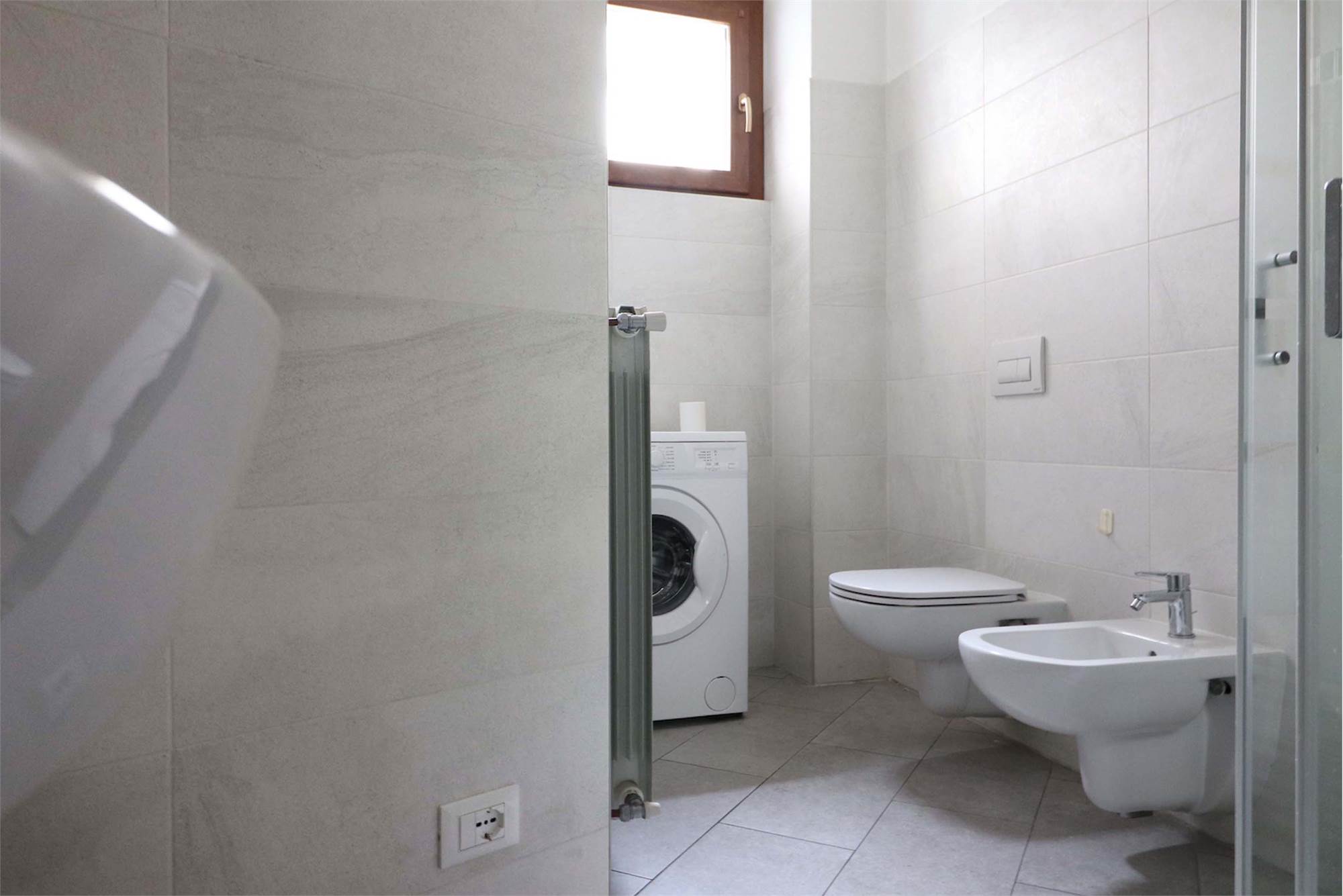La luminosissima zona giorno, con una moderna cucina a vista, è perfetta per accogliere amici e familiari. Ogni angolo è stato progettato con attenzione, dal disimpegno pratico al bagno finemente rifinito con sanitari sospesi e un'ampia doccia.
